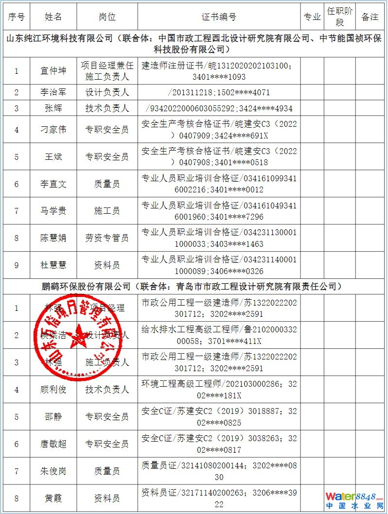 山東純江環(huán)境科技有限公司(聯(lián)合體:中國(guó)市政工程西北設(shè)計(jì)研究院有限公司、中節(jié)能?chē)?guó)禎環(huán)?萍脊煞萦邢薰荆