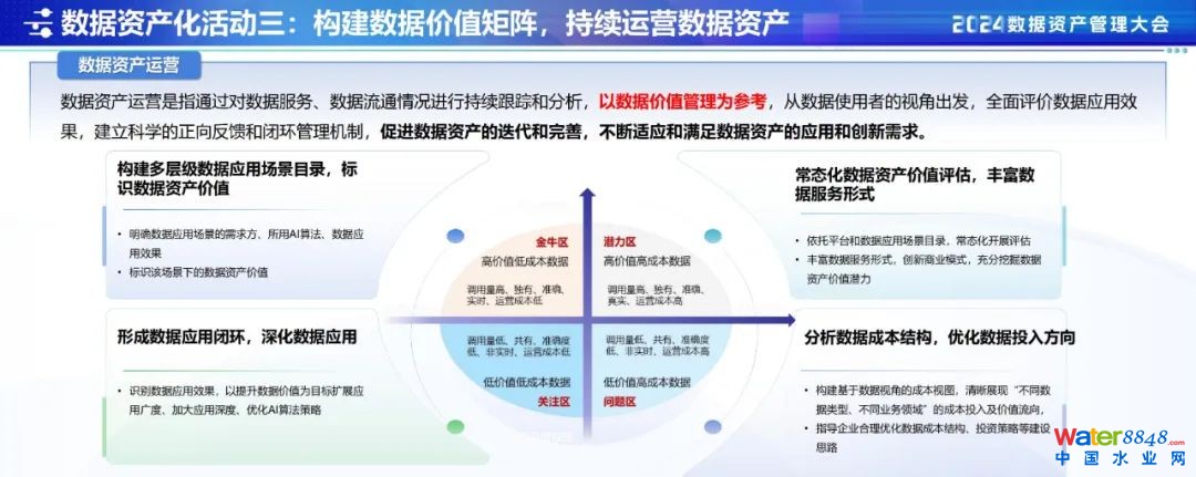 據(jù)介紹,《數(shù)據(jù)資產(chǎn)管理實踐指南(7.0版)》主要更新點包括總結(jié)數(shù)據(jù)開發(fā)管理新工藝、構(gòu)建數(shù)據(jù)價值評估指標、提出企業(yè)“三權(quán)分置”體系、探索企業(yè)數(shù)據(jù)交易合作新模式、明確數(shù)據(jù)估值和入表全鏈路、搭建數(shù)據(jù)價值矩陣四象限幾方面。