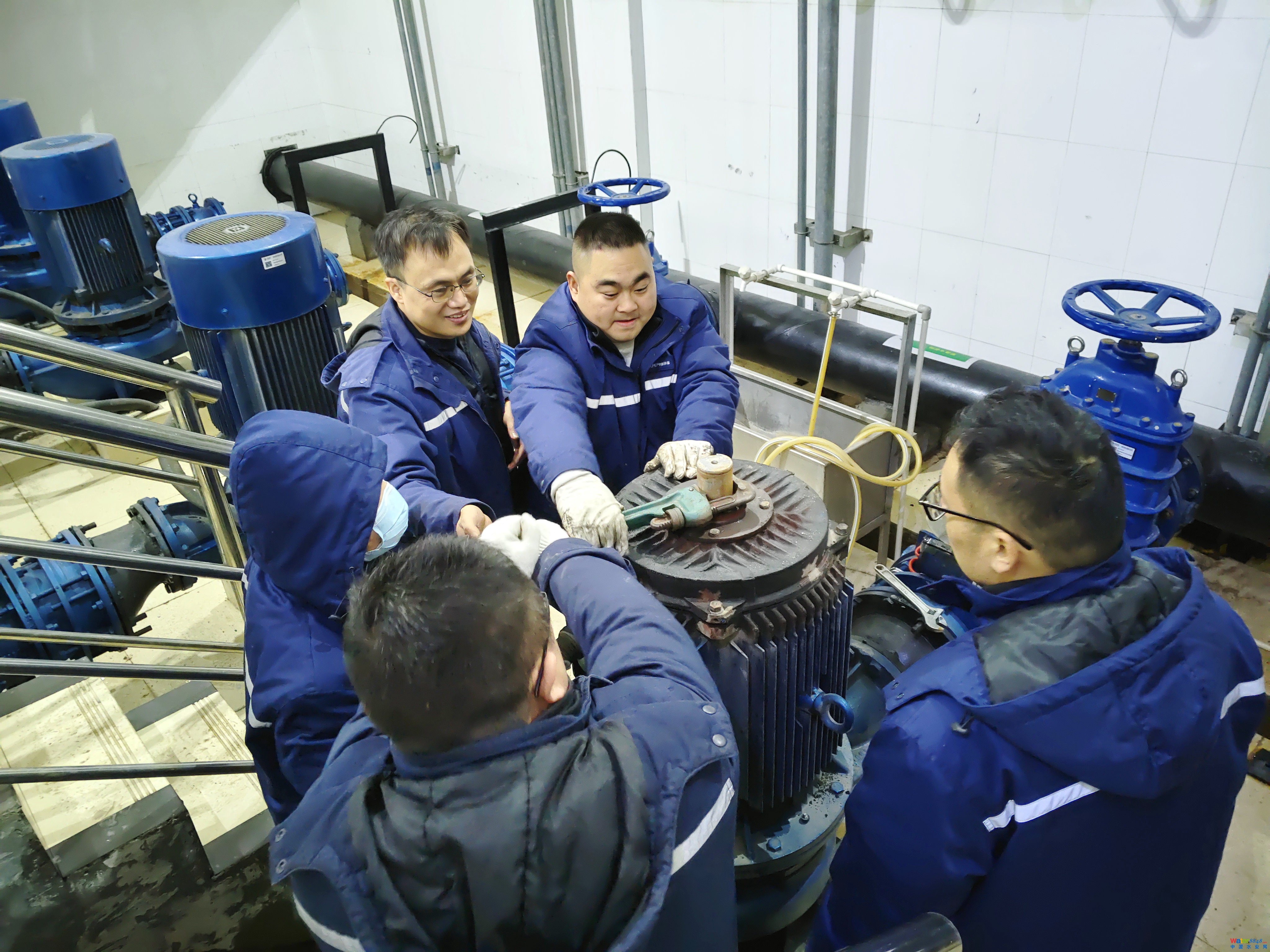 面對設(shè)備設(shè)施突發(fā)故障和生產(chǎn)緊急任務(wù),一線維修人員放棄休假,主動投入到生產(chǎn)保障中,確保假期生產(chǎn)穩(wěn)定。大年初一,鄭東水務(wù)2號反應(yīng)沉淀池行車突發(fā)脫軌,設(shè)備維修人員迅速前往現(xiàn)場進行檢修,冒寒校正軌道,同步排查同類設(shè)備隱患。大年初三,鄭州新區(qū)污水處理廠為配合檢修進行了活性焦工藝的調(diào)整,業(yè)務(wù)骨干主動放棄與家人團聚,迅速響應(yīng),從清晨到夜晚,他們不辭辛勞,不畏嚴寒,克服諸多困難,圓滿完成了維修任務(wù),保障了污水處理廠在春節(jié)期間安全穩(wěn)定運行。