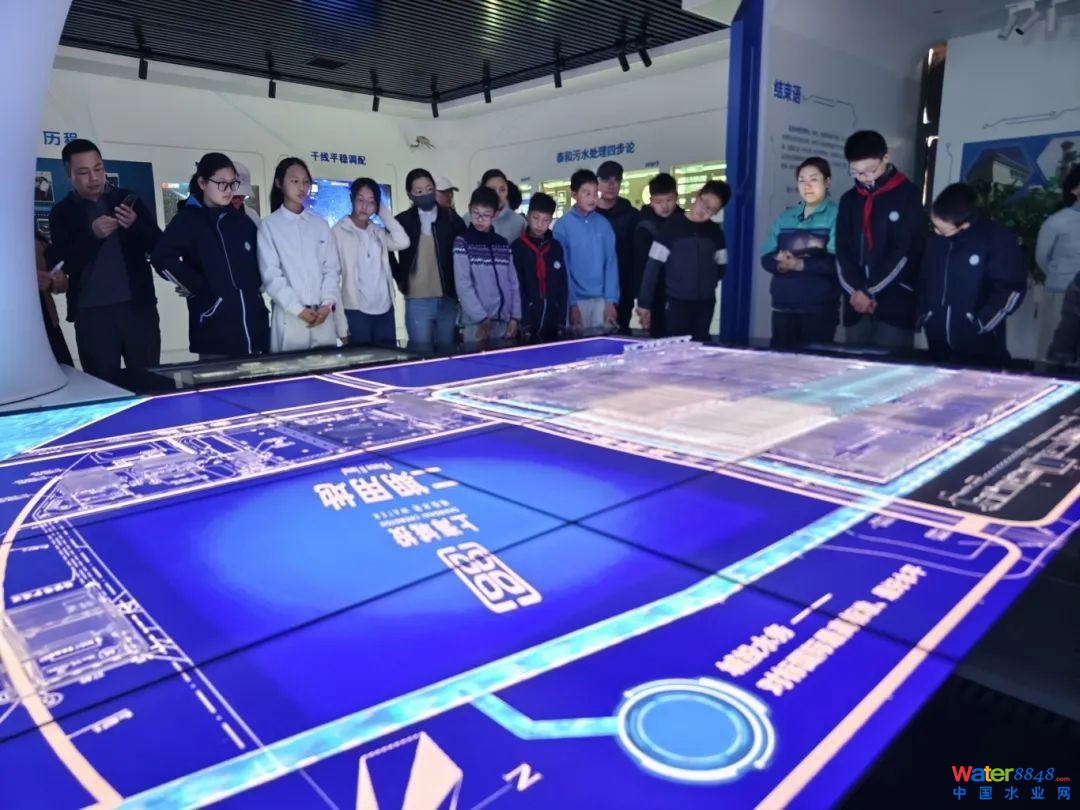 在污水廠一期工程和二期工程的沙盤前,孩子們直觀地看到了泰和污水廠的立體空間和三維結(jié)構(gòu),下方是復(fù)雜的污水凈化處理平臺,負責將每天收納的污水凈化成完全達標的無害化水,地面以上則是美輪美奐的花園綠地,整個廠區(qū)風景優(yōu)美、空氣清新,完全沒有傳統(tǒng)污水廠散發(fā)的污水臭氣。
