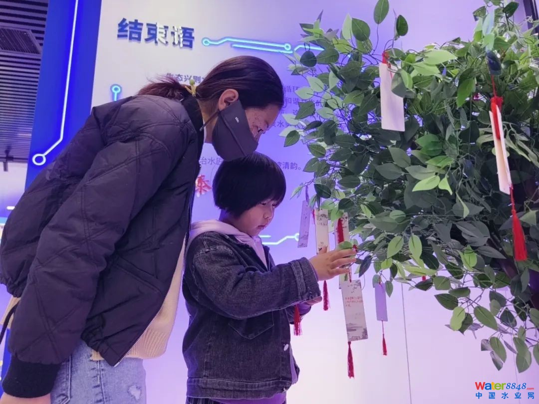 在廠區(qū)的科普教育基地參觀時,楊茹涵小朋友和媽媽被一棵心愿樹迷住了,之前有許多孩子將自己的心愿寫下來掛在心愿樹上,他們的心愿深深地觸動了楊茹涵的心靈。楊茹涵小朋友表示:“保護水質(zhì),人人有責!”