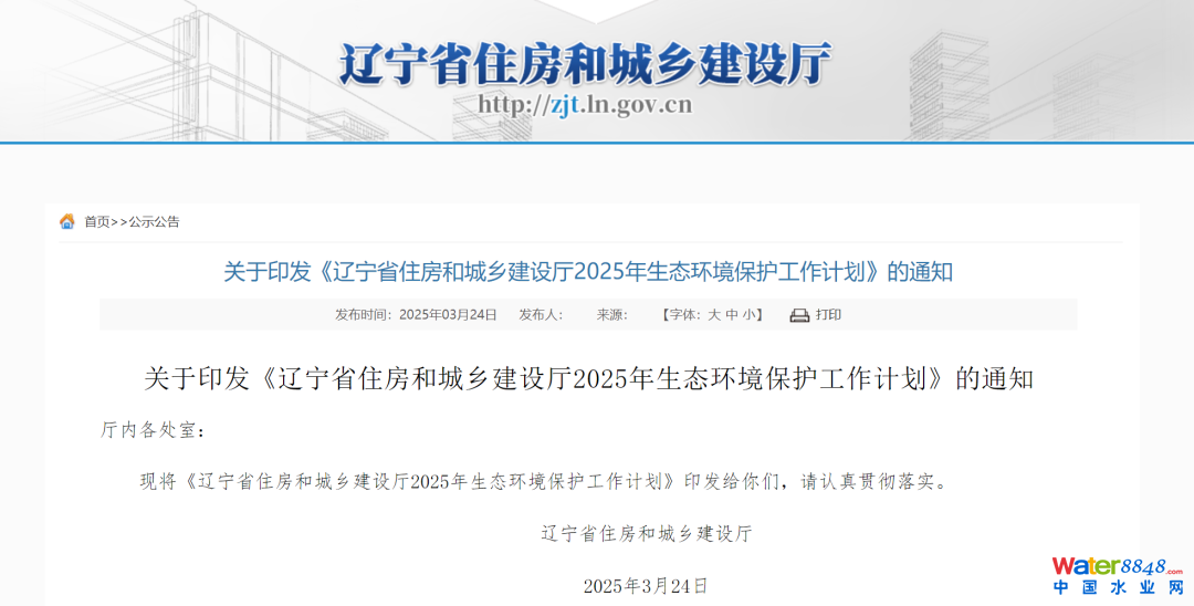關于印發(fā)《遼寧省住房和城鄉(xiāng)建設廳2025年生態(tài)環(huán)境保護工作計劃》的通知