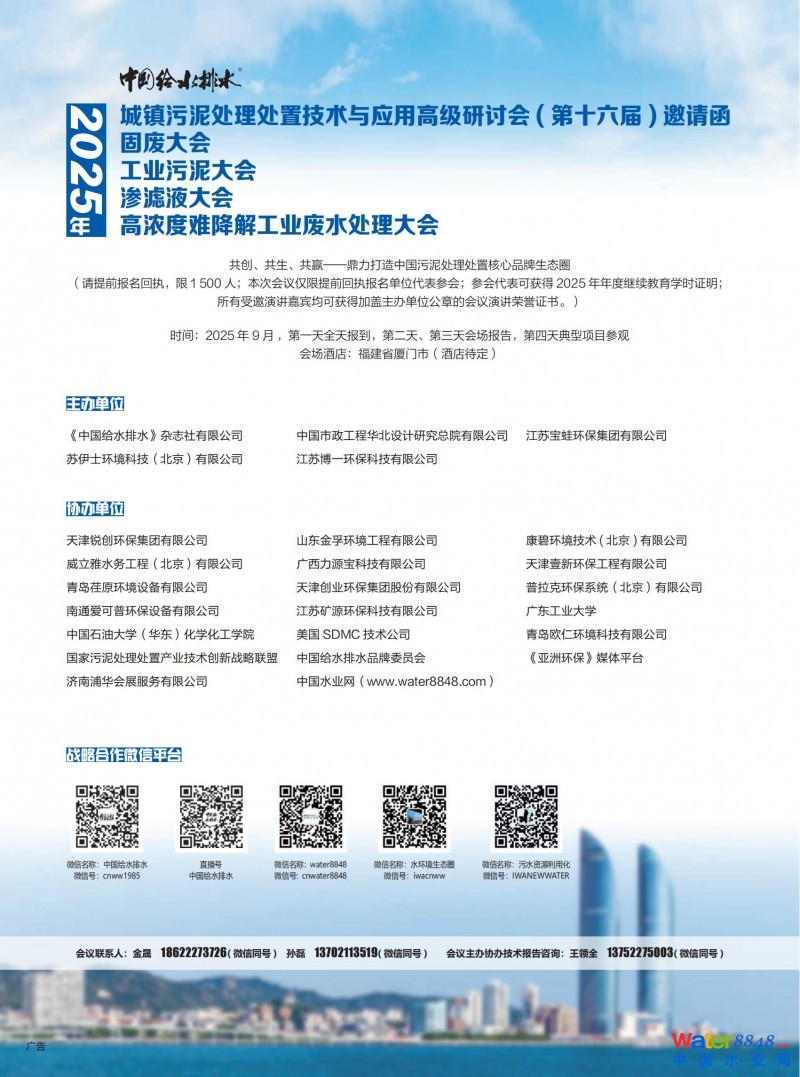 轉(zhuǎn)發(fā)直播邀請(qǐng),直播邀請(qǐng)觀眾排行榜排名前20名的行業(yè)同仁,本人可以免費(fèi)參加2025年9月份在福建省廈門市舉辦的中國(guó)給水排水2025年污泥大會(huì)(第十六屆)。