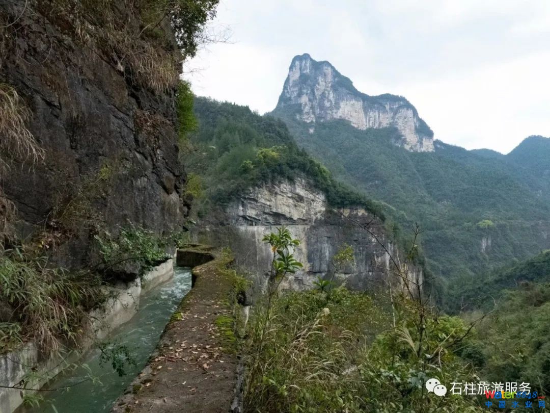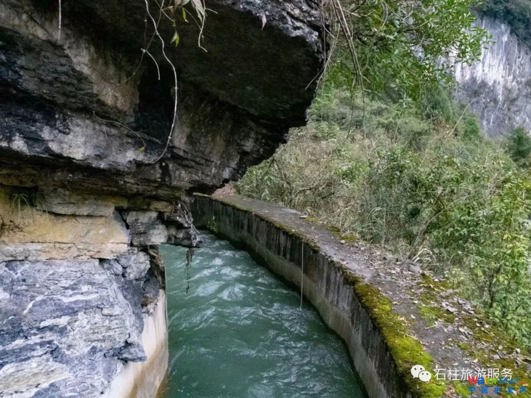 就在林縣人書寫這一傳奇之后,石柱縣黃鶴鎮(zhèn)(當(dāng)初叫黃鶴鄉(xiāng))鷹嘴巖大峽谷中,黃鶴兒女歷時(shí)5年,也在懸崖絕壁上鑿出了一條15.3公里長的引水渠,至今清流涓涓,灌溉、飲用、發(fā)電,滋養(yǎng)著沿線村落,保證了1336畝干旱田地的有效灌溉。