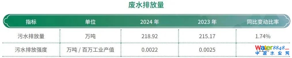 水資源消耗總量同比下降6.2%,水循環(huán)利用率超87%,污水排放強(qiáng)度同比下降12%,5座污水廠污廢水處理達(dá)標(biāo)率100%