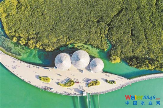 下潭尾紅樹林公園,一片片紅樹林枝葉繁茂,如同鑲嵌在海面上的翡翠。記者 張奇輝攝