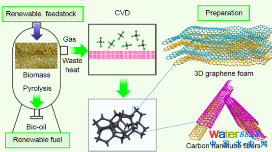 圖2. 廢棄生物質(zhì)熱解制備高附加值碳納米材料路線示意。