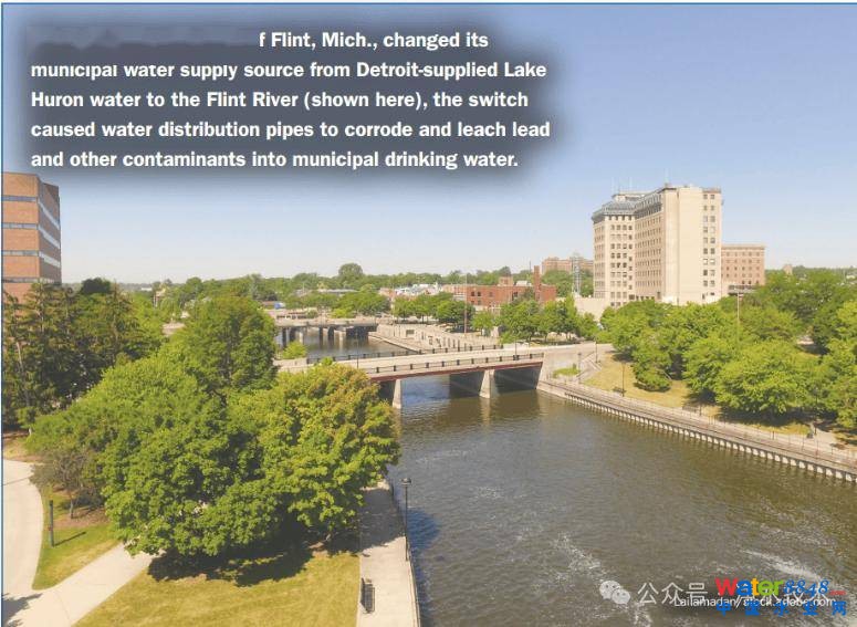 圖 當(dāng)弗林特市將他的市政供水水源從底特律買水改為從弗林特河取水,水源的切換導(dǎo)致了弗林特市的輸配水管道的腐蝕和鉛泄露,這些污染直接進(jìn)入了市政飲用水中。