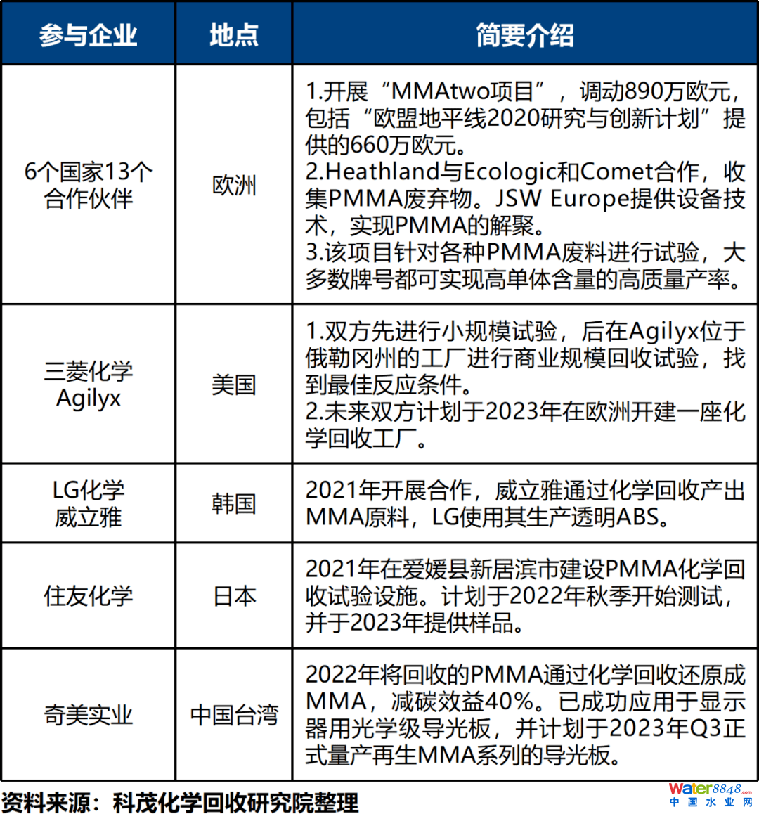 表8 全球 PMMA 化學(xué)循環(huán)案例