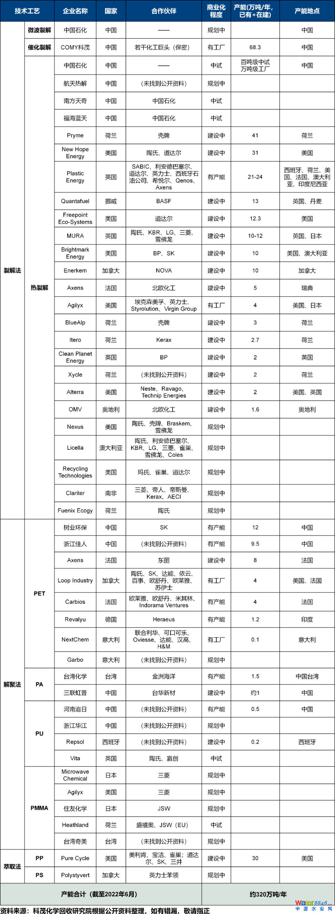 表9 全球化學(xué)回收企業(yè)產(chǎn)能布局