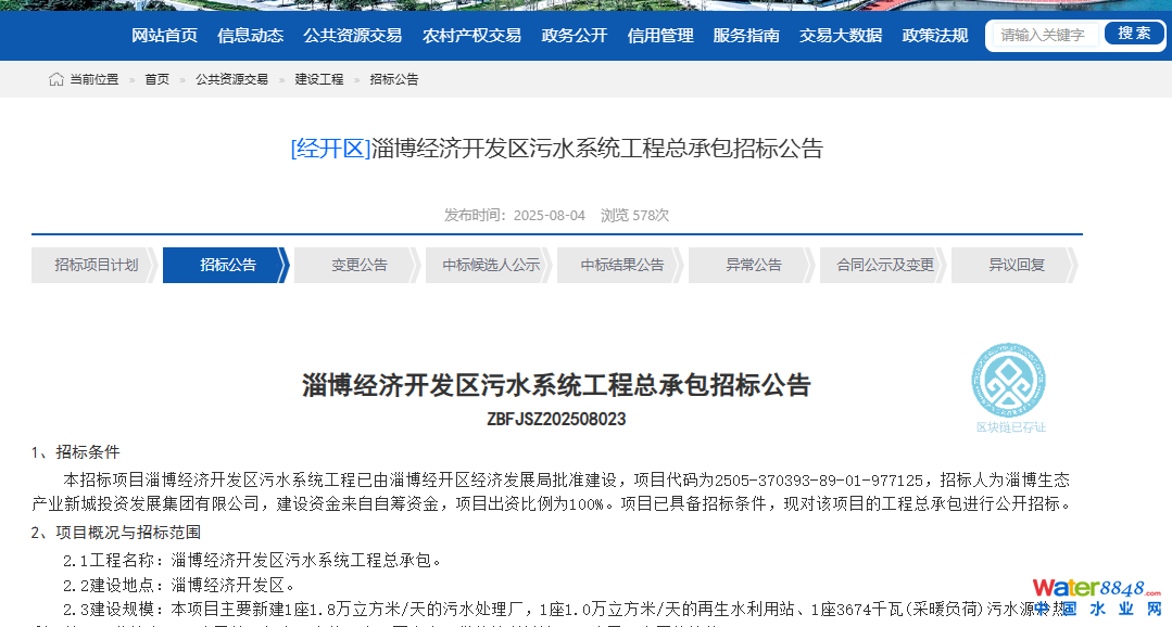 5.37億元!淄博經(jīng)濟開發(fā)區(qū)污水系統(tǒng)工程總承包開始招標(biāo)