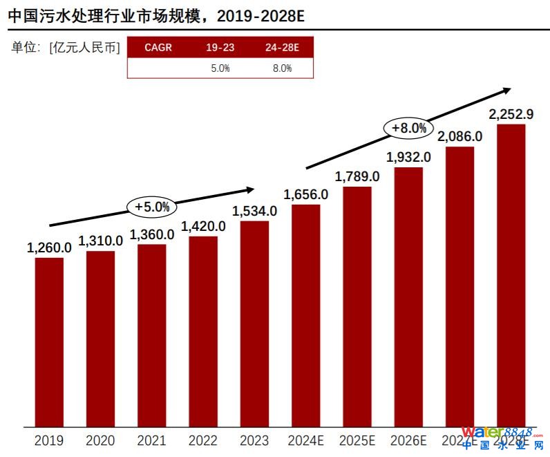 預(yù)計2024-2028年,污水處理市場規(guī)模逐年遞增,并在2028年達(dá)到2,252.9億元人民幣,年均復(fù)合增長率為8%。