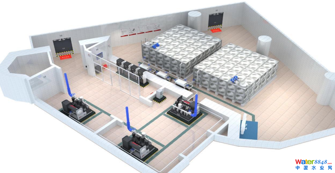 通過水齡優(yōu)化及動(dòng)態(tài)調(diào)壓的先進(jìn)控制算法合理確定低位水箱(水池)容積、水泵的流量揚(yáng)程參數(shù),在水質(zhì)提升、節(jié)能降碳、節(jié)水降漏方面進(jìn)行智慧優(yōu)化。選取先進(jìn)的靜音水泵并配合靜音泵房設(shè)計(jì),解決二供泵房噪音擾民問題。充分考慮施工過程中新舊系統(tǒng)的銜接,制定詳細(xì)的調(diào)試及接駁預(yù)案,減少項(xiàng)目施工期間對(duì)居民用水影響。